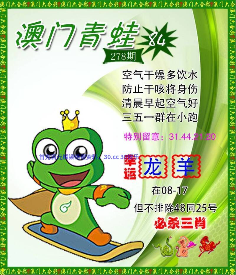 278期:空气干燥多饮水,防止干咳将身伤,清晨早起空气好,三五一群在小跑 解释:防止干咳将身伤,解武将虎牛狗猴马蛇 生肖:虎牛狗猴马蛇 特码:16.28.05.29.20.44.10.22.24.36.25.37 |